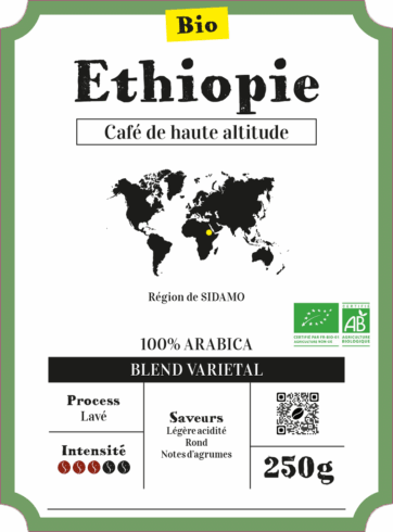 ETHIOPIE – REGION SIDAMO – ARABICA – BIO – Café en grains